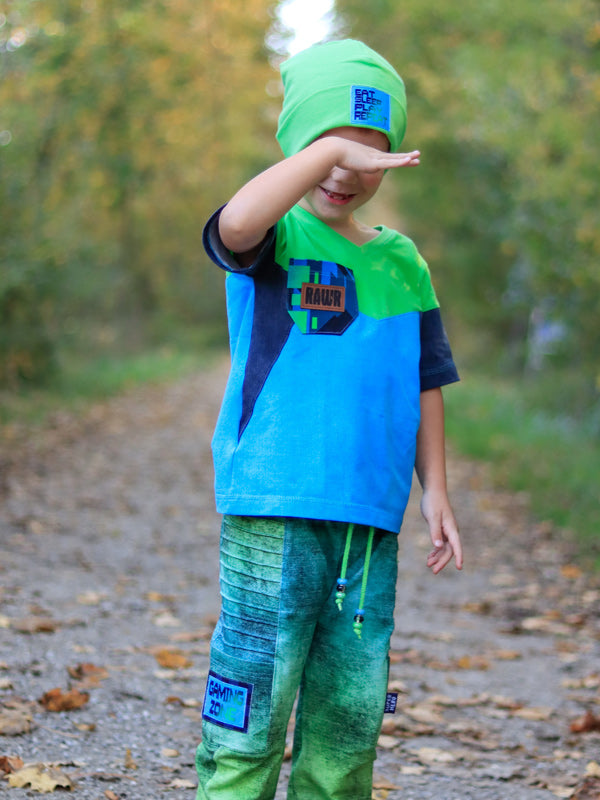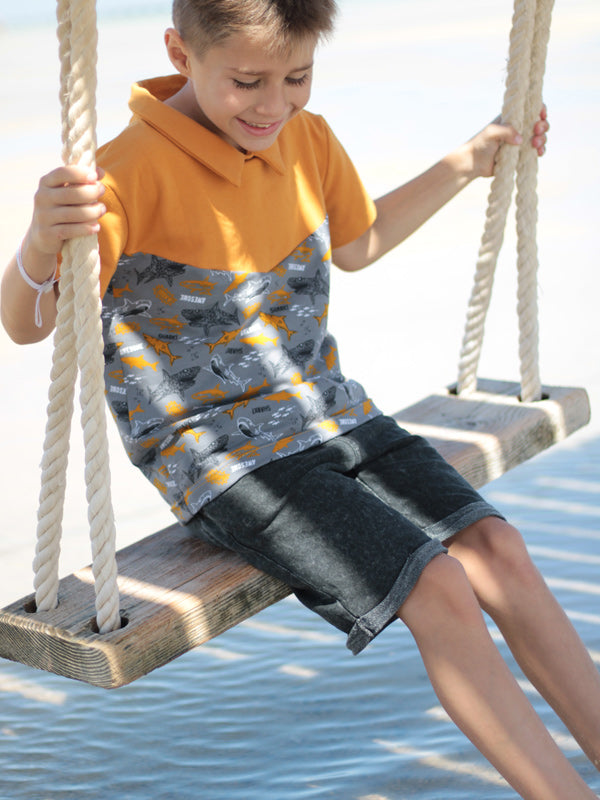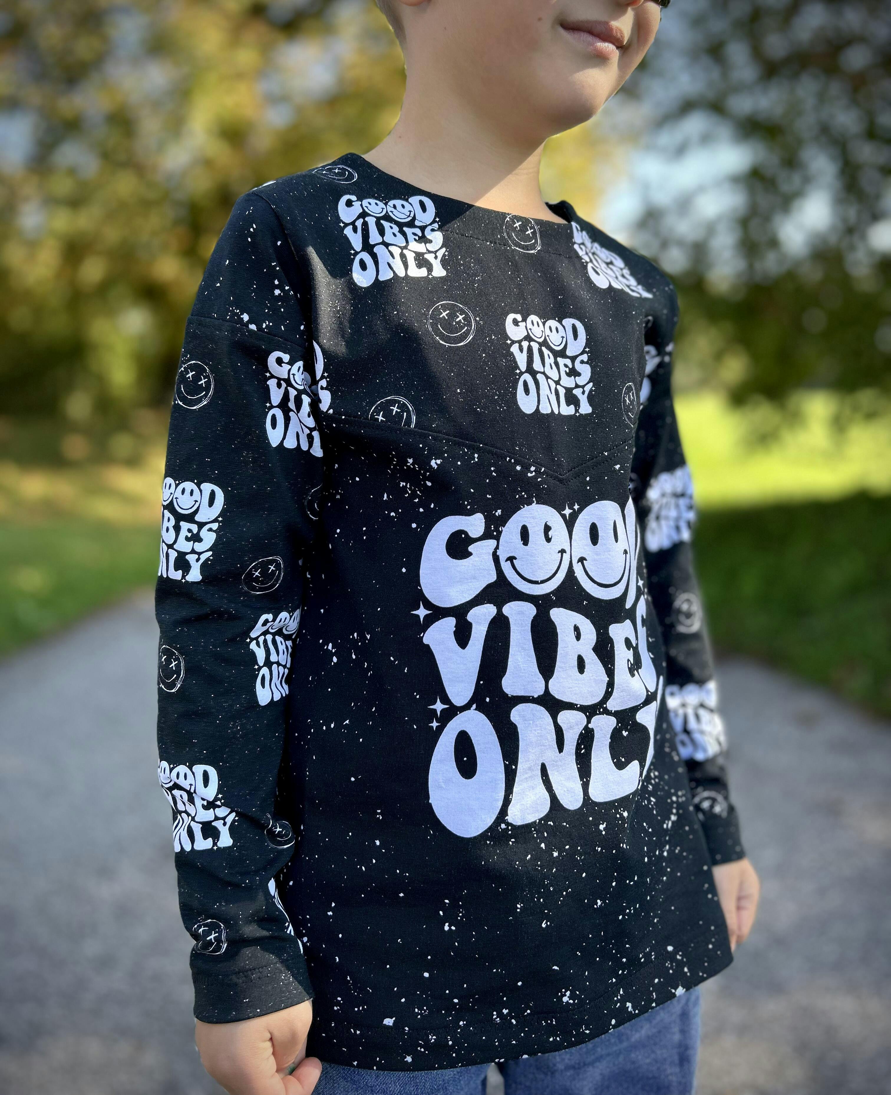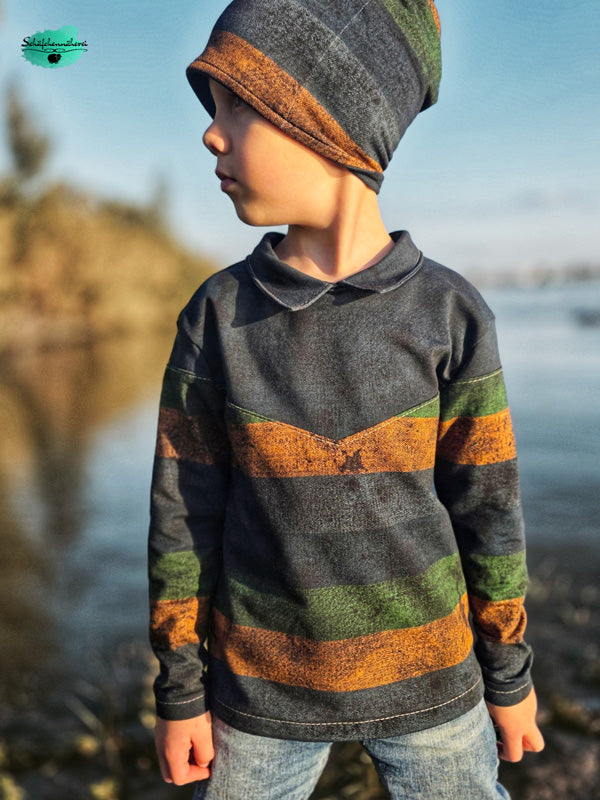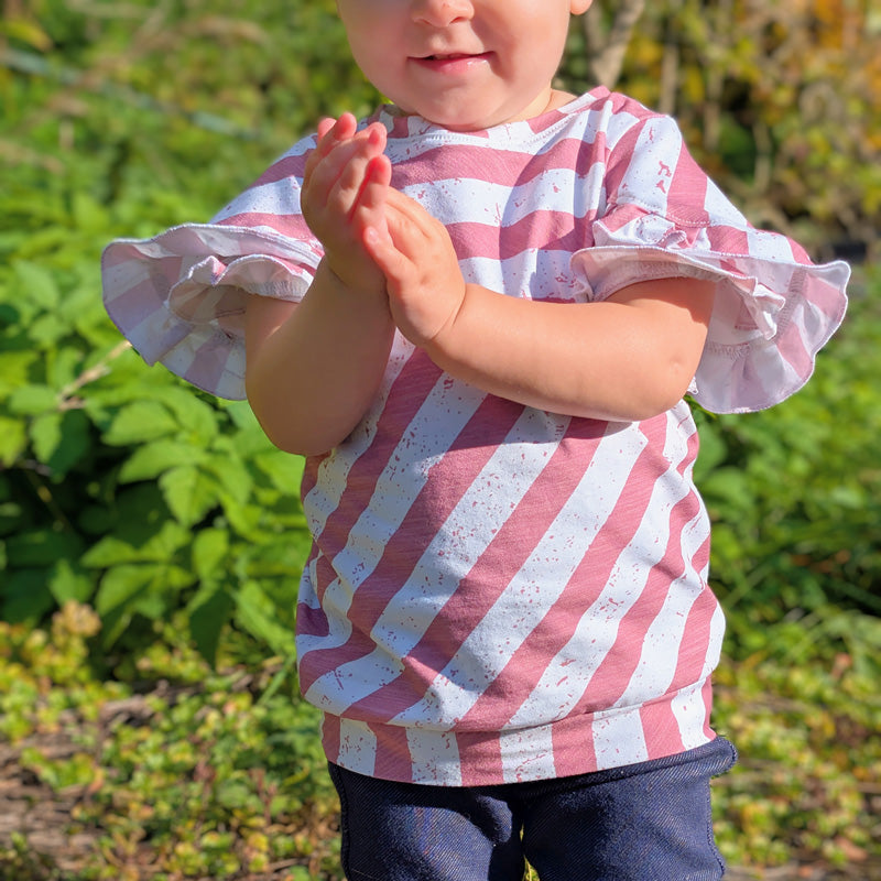 lovely split shirt ist ein Oberteil, welches in den Größen 74-164 für Jungen und Mädchen dank der verschiedenen Ärmellängen über das ganze Jahr genäht werden kann.