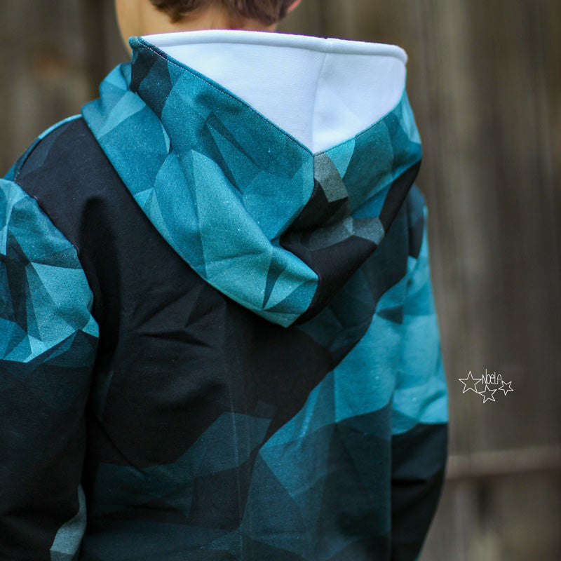 Halsbündchen, Kapuze, Kragen, Tulpenärmel, 3/4-Ärmel, geteilte Ärmel, Teilung, Saumabschluss und Bündchenabschluss